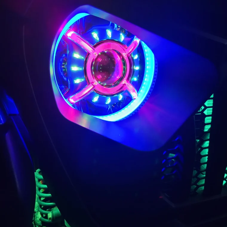 The hottest headlight out right now!! Three separate zones to control color combinations in an almost endless option of color schemes! In addition to the color options, the driving light inside this incredible headlight is both bright and comes with a clean cutoff line to account for oncoming traffic.